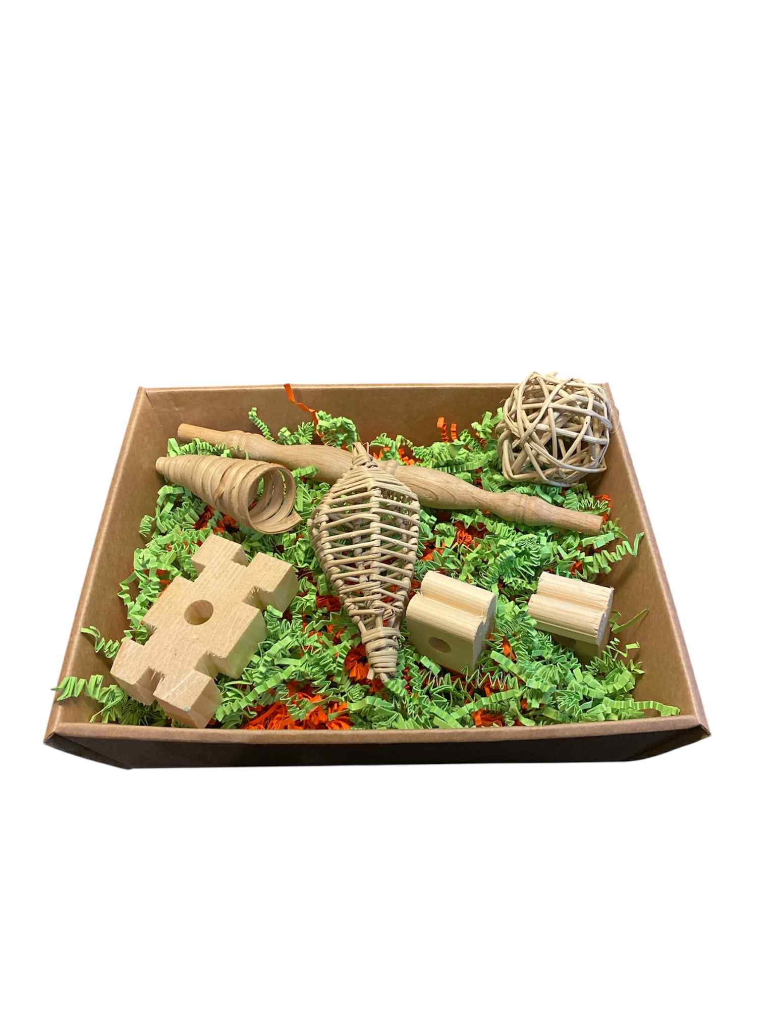 - 1x Houten Staafje – om op te knagen en vast te houden